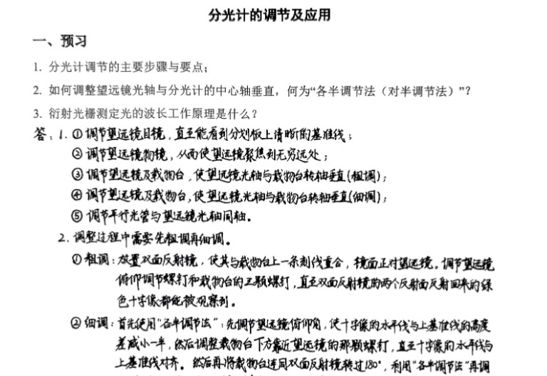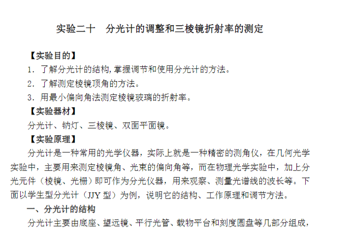 实验二十 分光计的调整和三棱镜折射率的测定