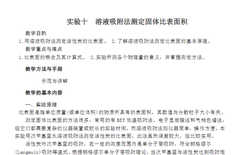 溶液吸附法测定固体比表面积