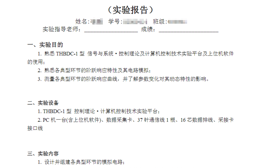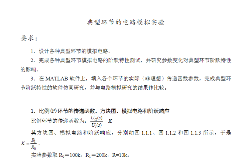 实验报告典型环节的电路模拟