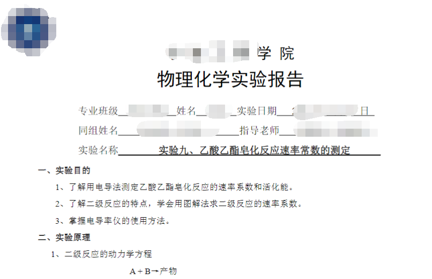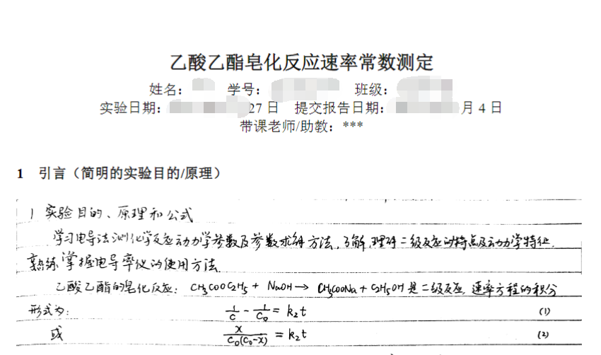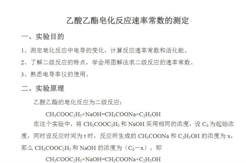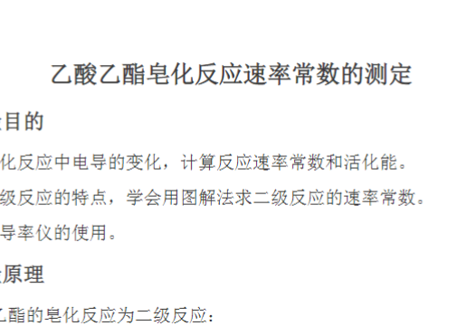 乙酸乙酯皂化反应速率常数的测定实验