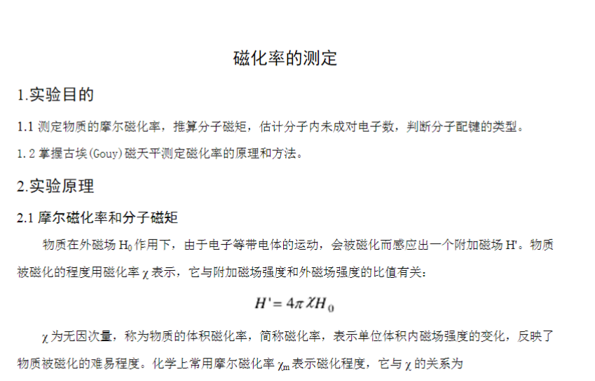 磁化率的测定实验报告