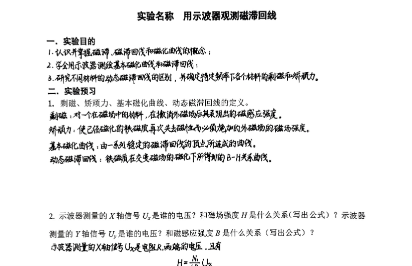 用示波器测量动态磁滞回线