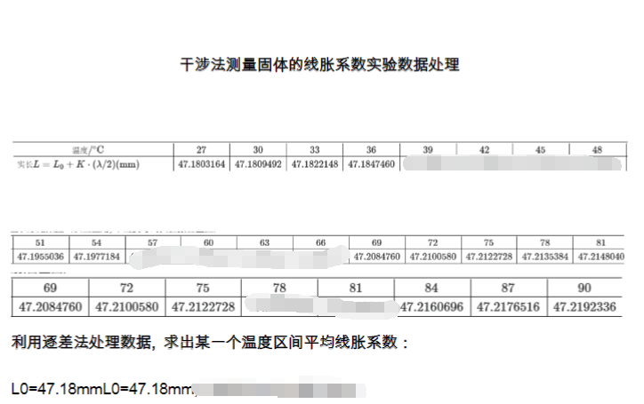 干涉法测量固体的线胀系数实验数据处理