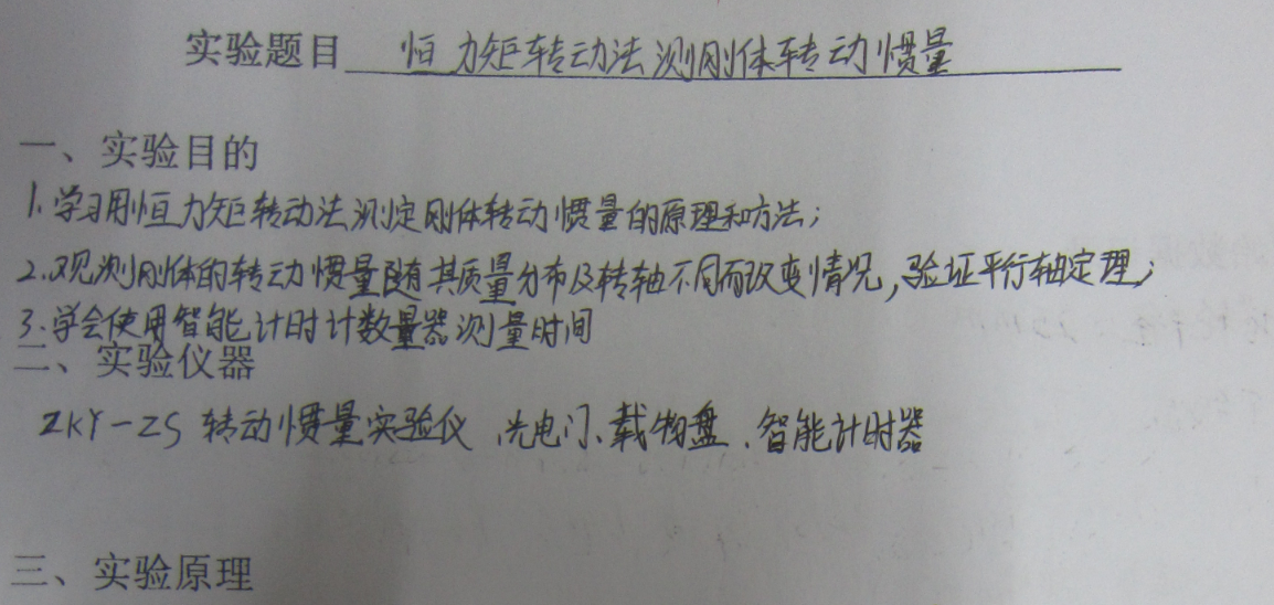 恒力矩转动法测刚体转动惯量实验报告及数据处理