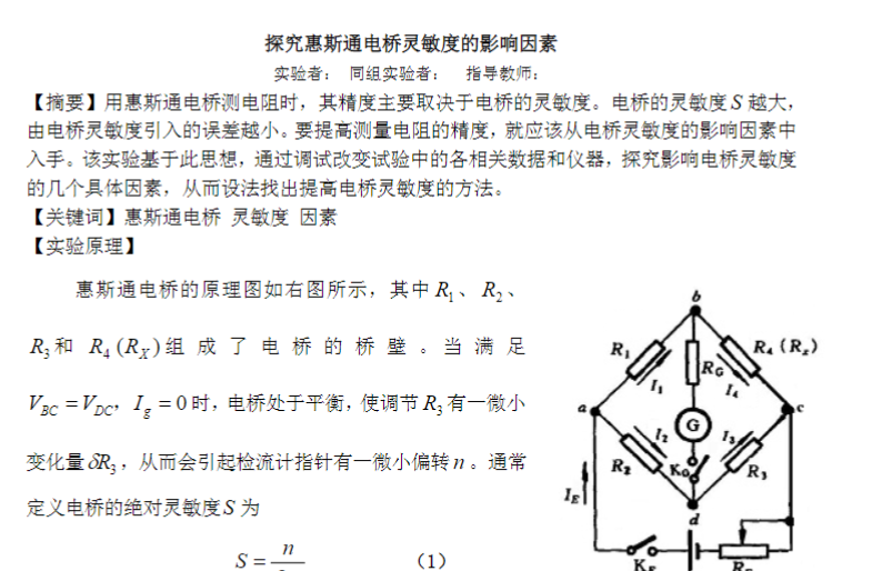 探究惠斯通电桥灵敏度的影响因素