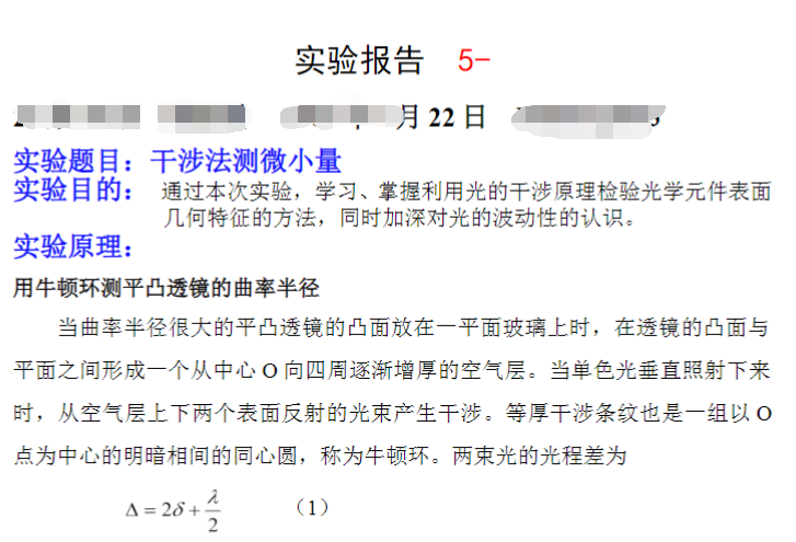 牛顿环测透镜的曲率半径实验报告
