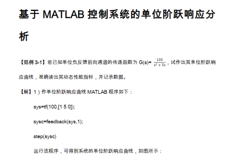 基于MATLAB控制系统的单位阶跃响应分析