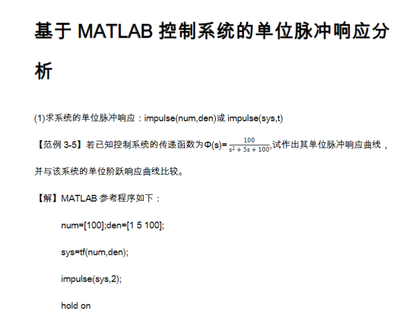基于MATLAB控制系统的单位脉冲响应分析