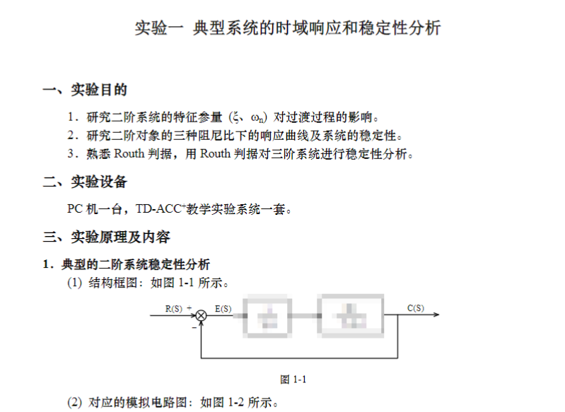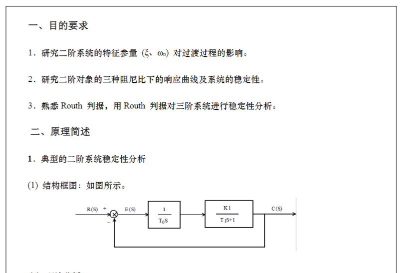 自动控制原理实验典型系统地时域响应和稳定性分析报告