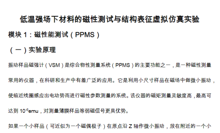 低温强场下材料的磁性测试与结构表征虚拟仿真实验