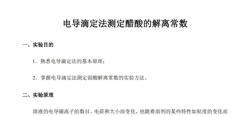 电导滴定法测定醋酸的解离常数