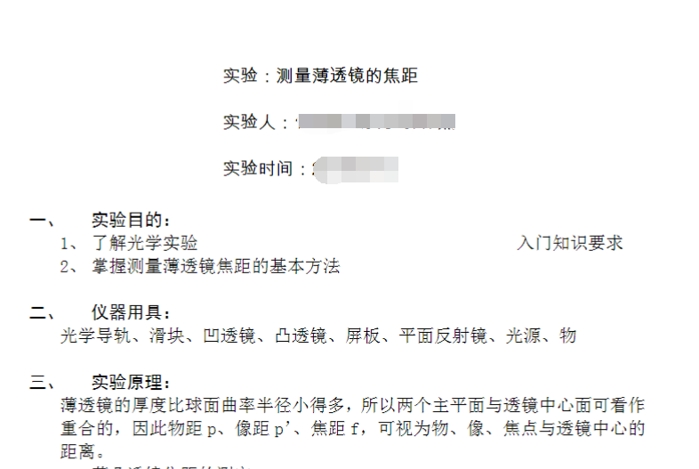 薄透镜焦距的测量