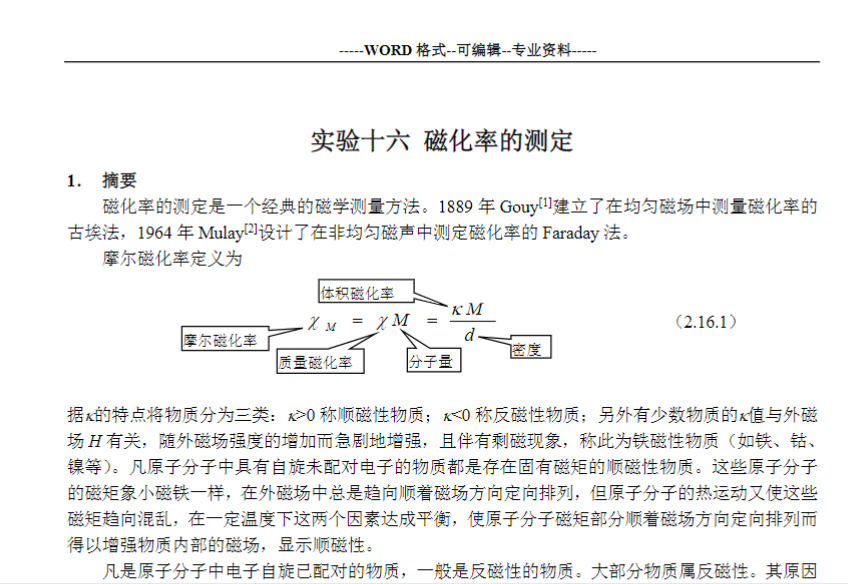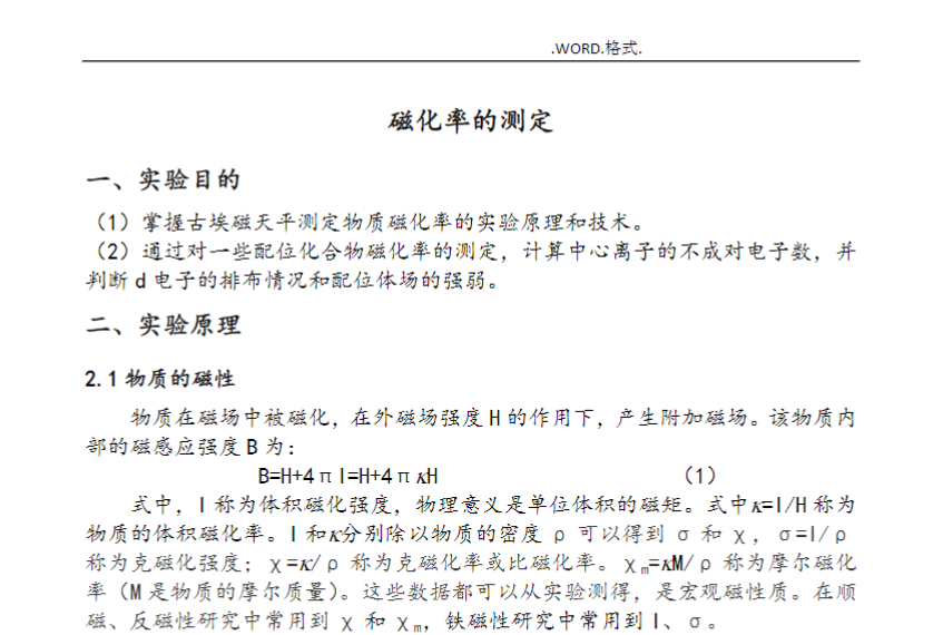 磁化率的测定(实验报告)