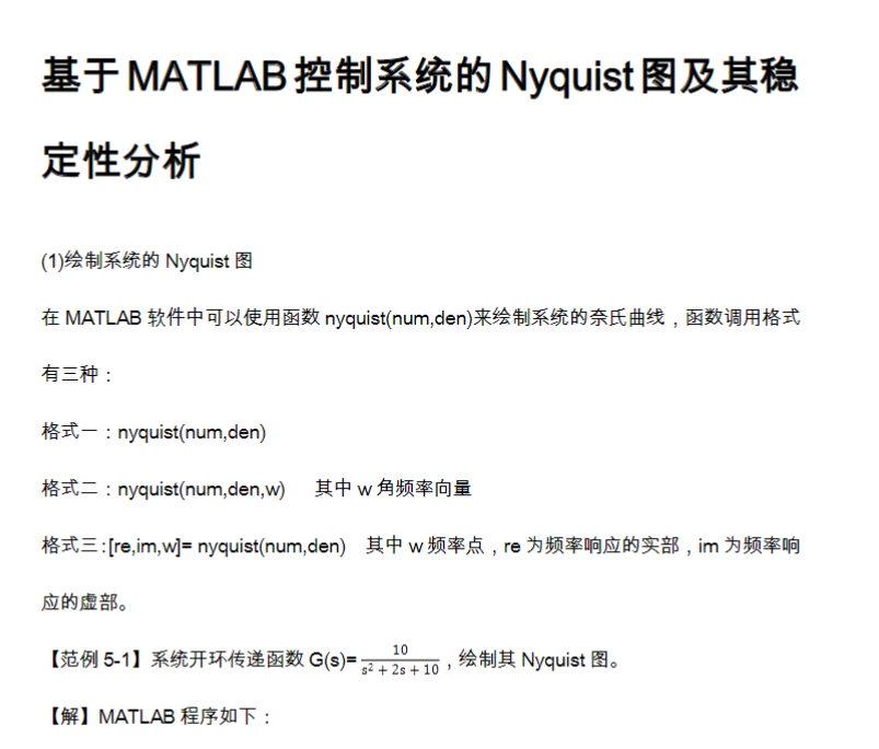 基于MATLAB控制系统的Nyquist图及其稳定性分析