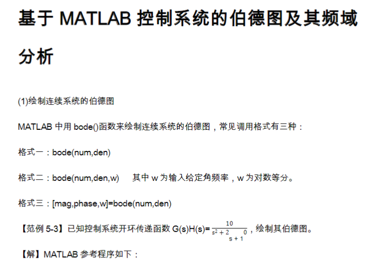 基于MATLAB控制系统的伯德图及其频域分析