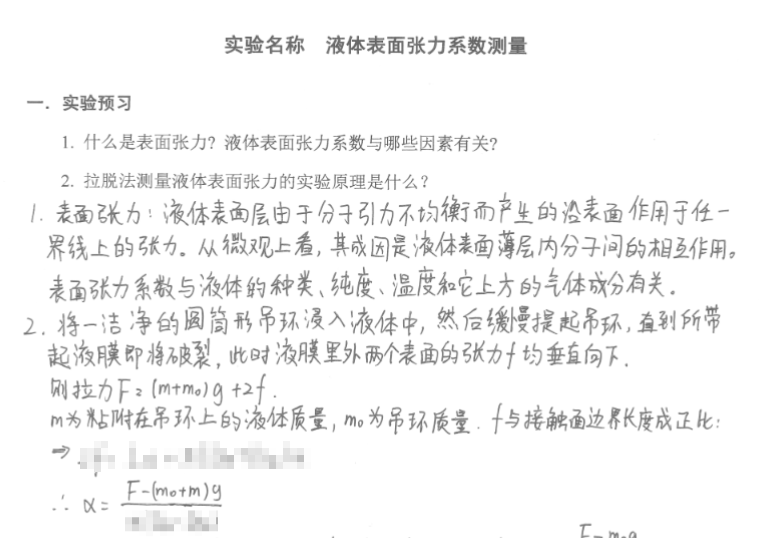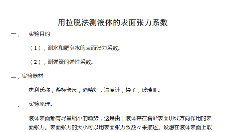 用拉脱法测液体的表面张力系数