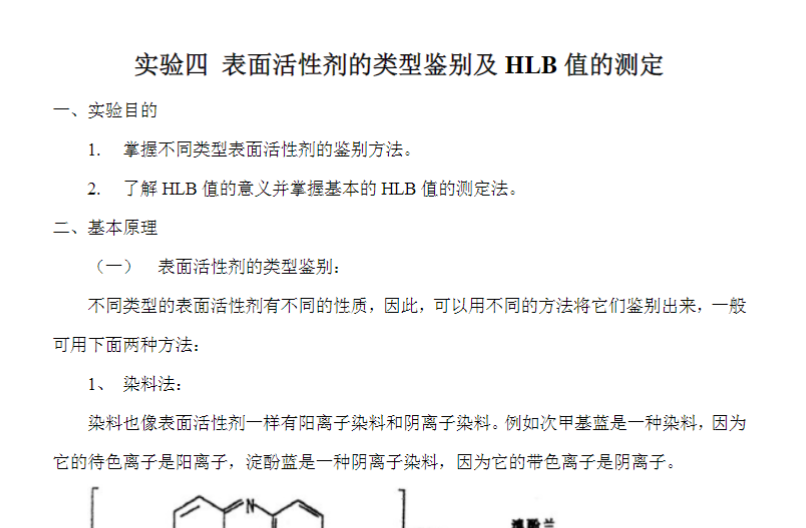 表面活性剂的类型鉴别及HLB值的测定