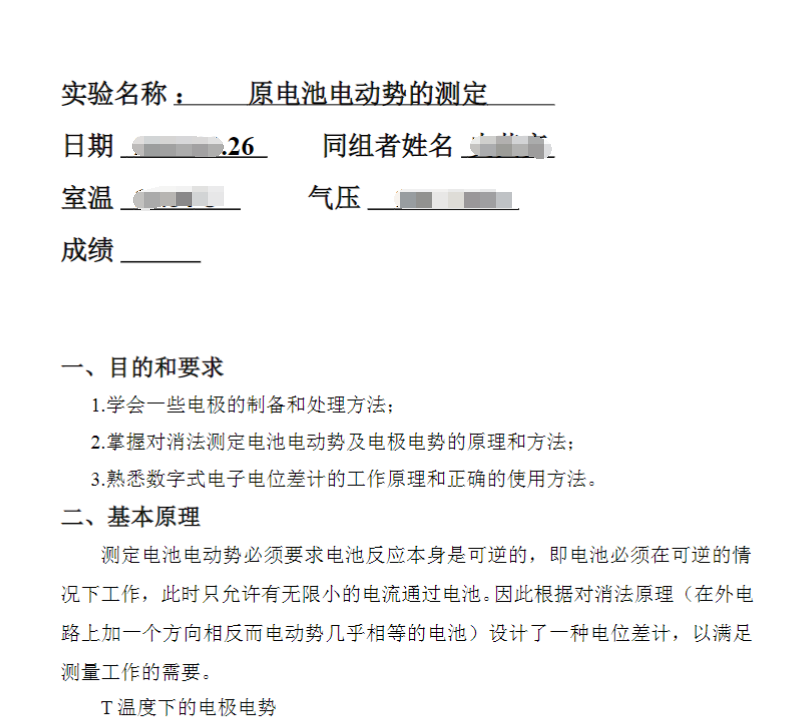 氢超电势的测定(可点进来上滑预览)