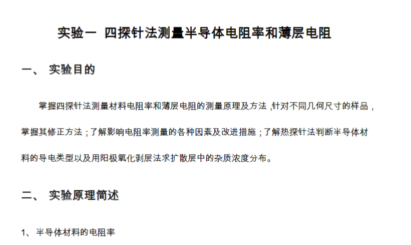 四探针法测量半导体电阻率和薄层电阻