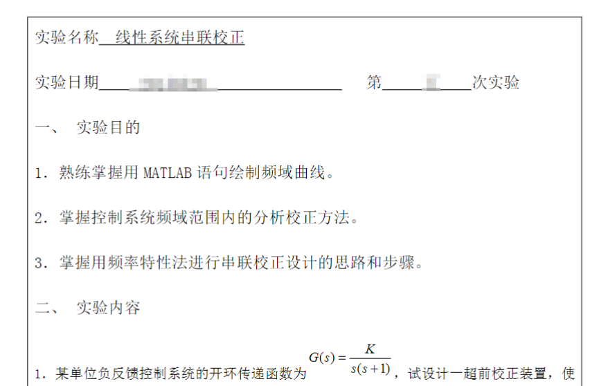 控制理论实验报告线性定常系统的串联校正