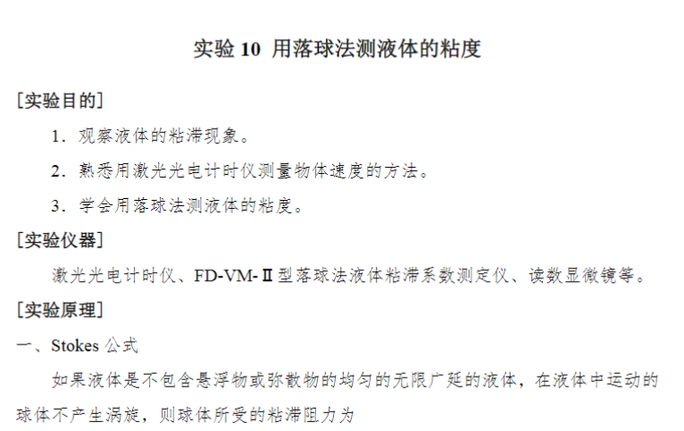 实验10用落球法测液体的粘度