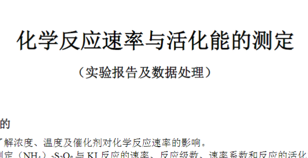 化学反应速率与活化能的测定