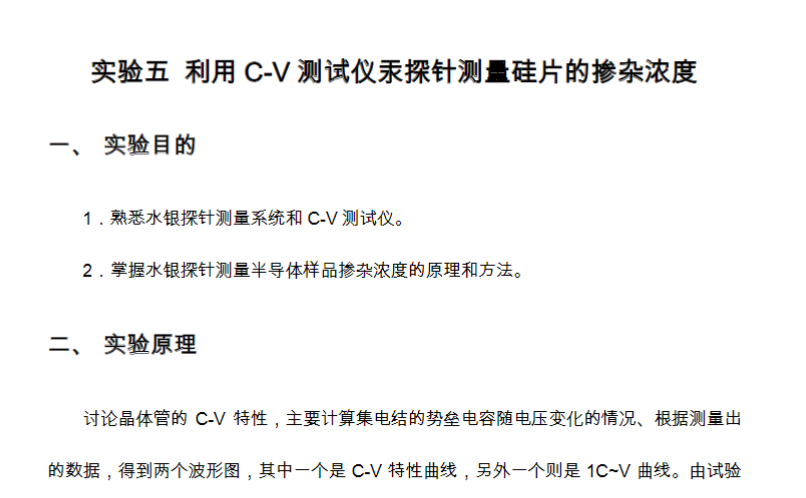 利用 C-V 测试仪汞探针测量硅片的掺杂浓度
