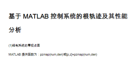基于MATLAB控制系统的根轨迹及其性能分析