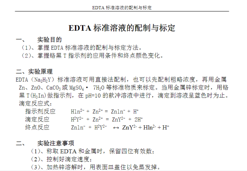 EDTA标准溶液的配制与标定实验报告