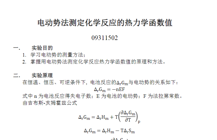 电动势法测定化学反应的热力学函数值