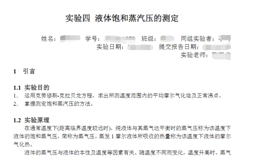 液体饱和蒸汽压的测定