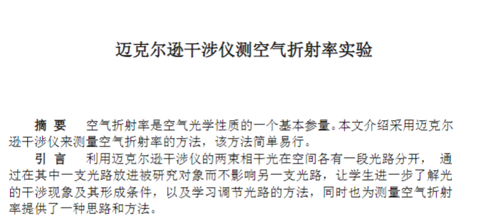 迈克尔逊干涉仪测玻璃折射率