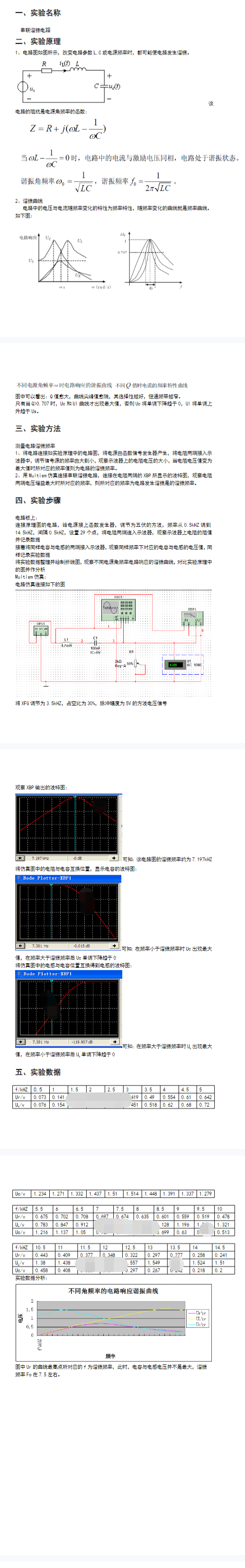 串联谐振实验报告