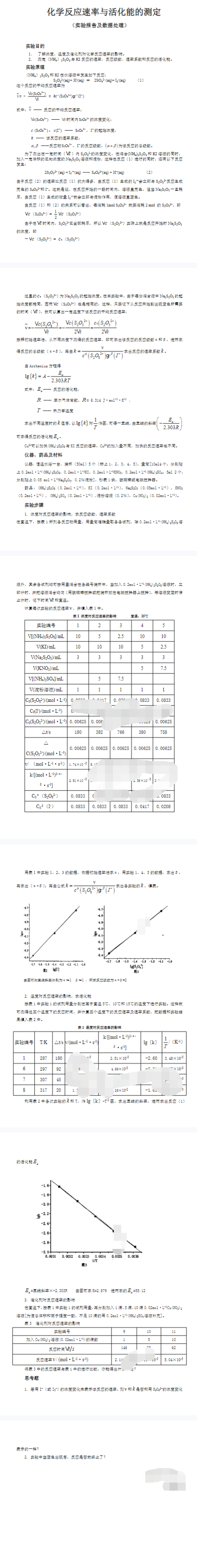 化学反应速率与活化能的测定