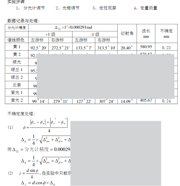 光栅衍射测量光波长