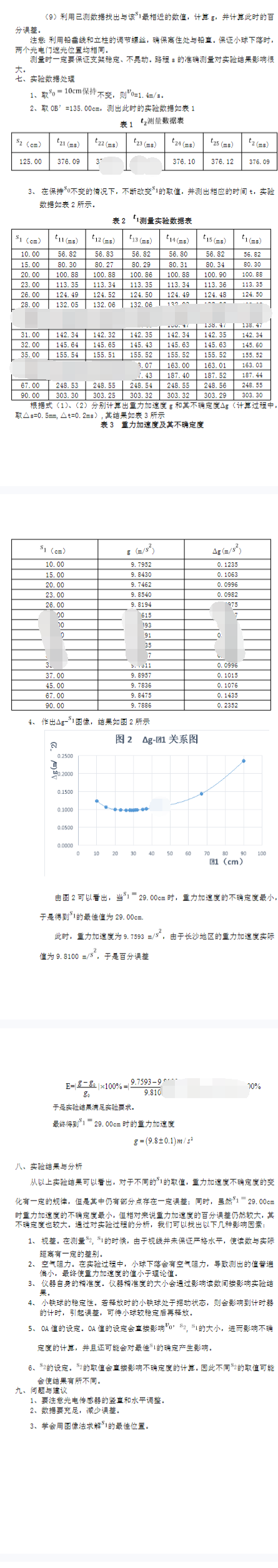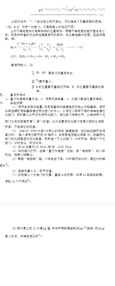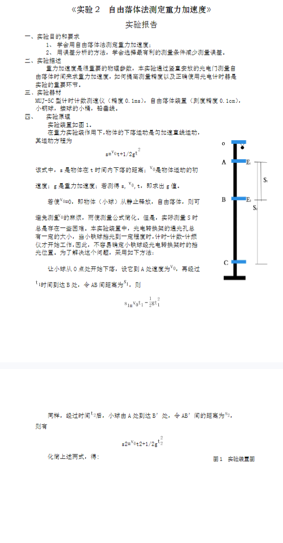 自由落体法测定重力加速度
