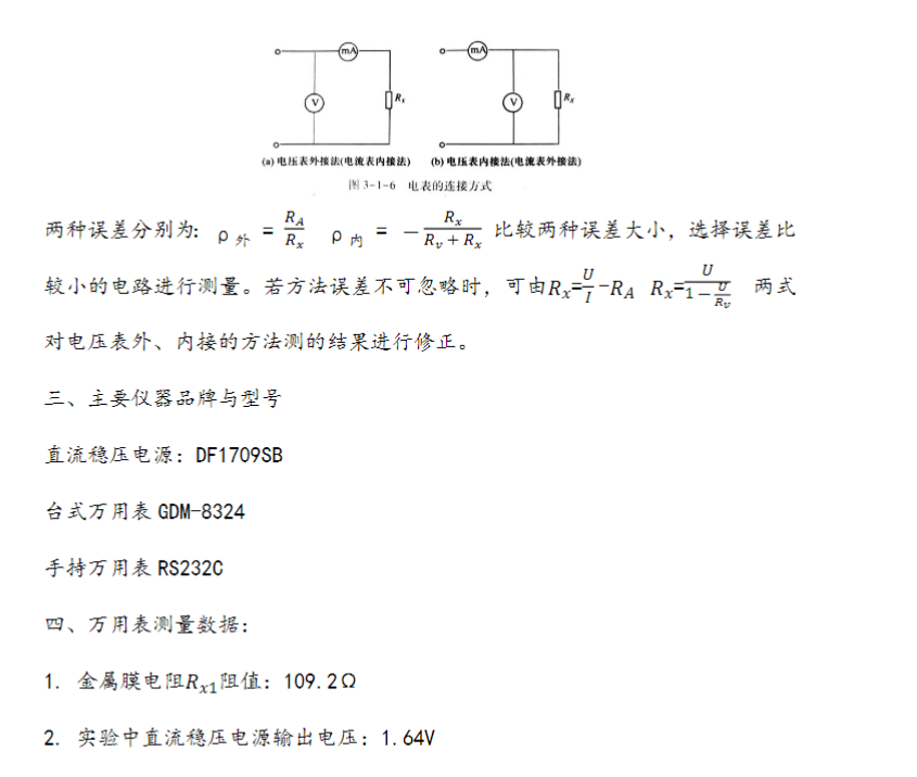 伏安法测电阻实验报告