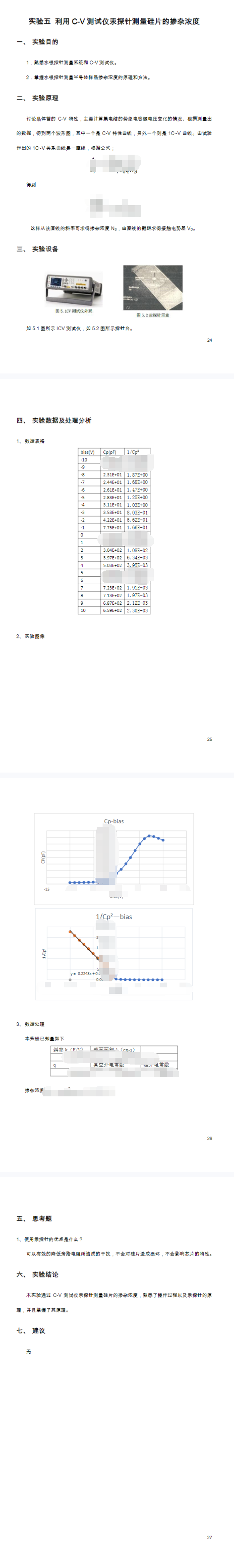 利用 C-V 测试仪汞探针测量硅片的掺杂浓度