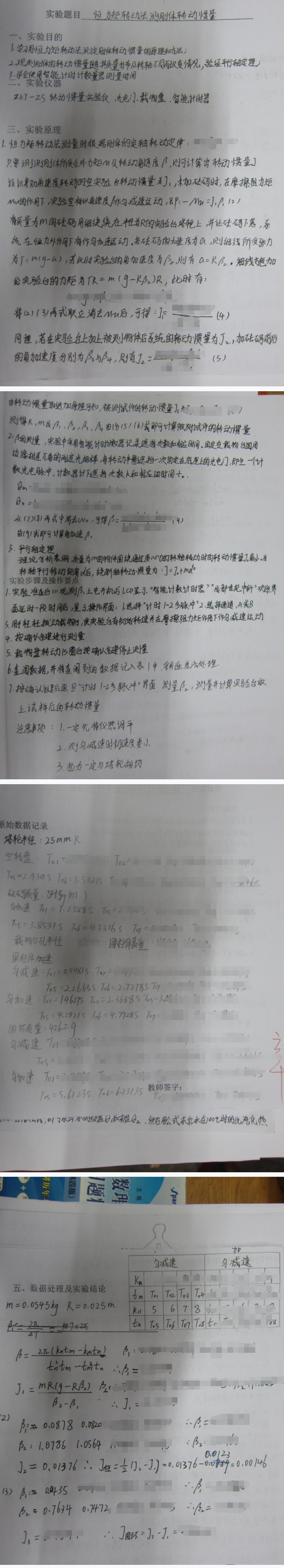 恒力矩转动法测刚体转动惯量实验报告及数据处理