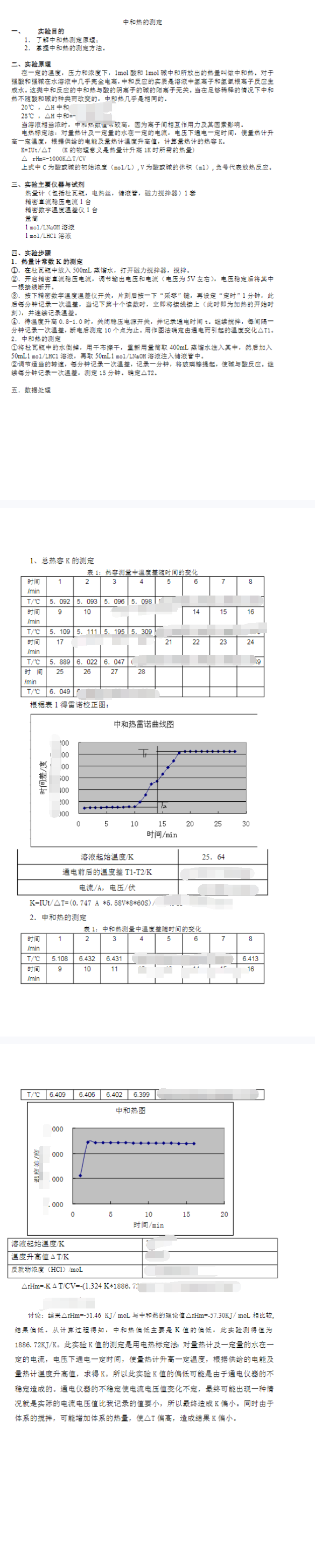 物化实验中和热的测定实验报告