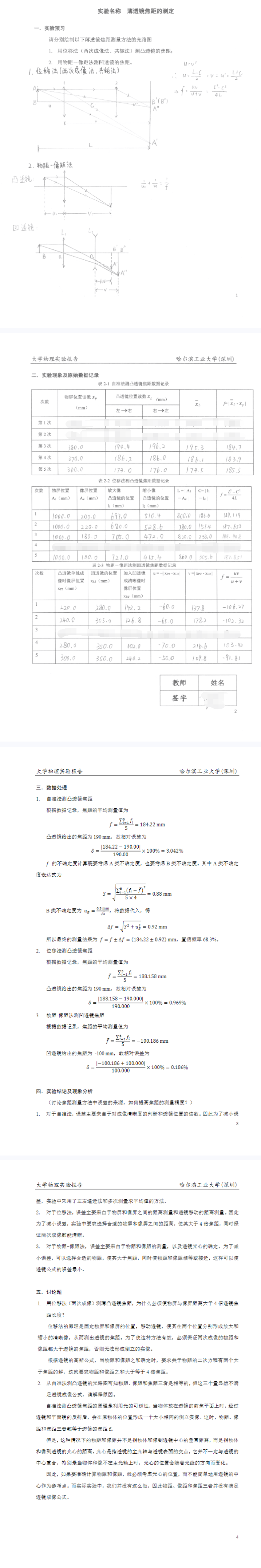 薄透镜焦距的测定