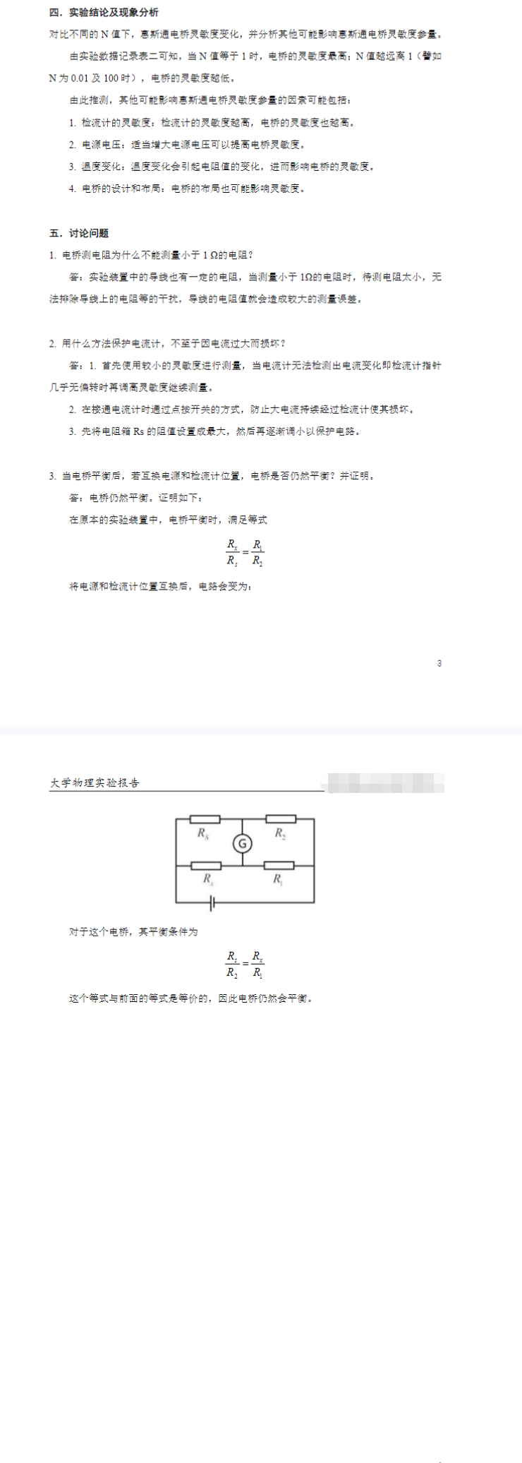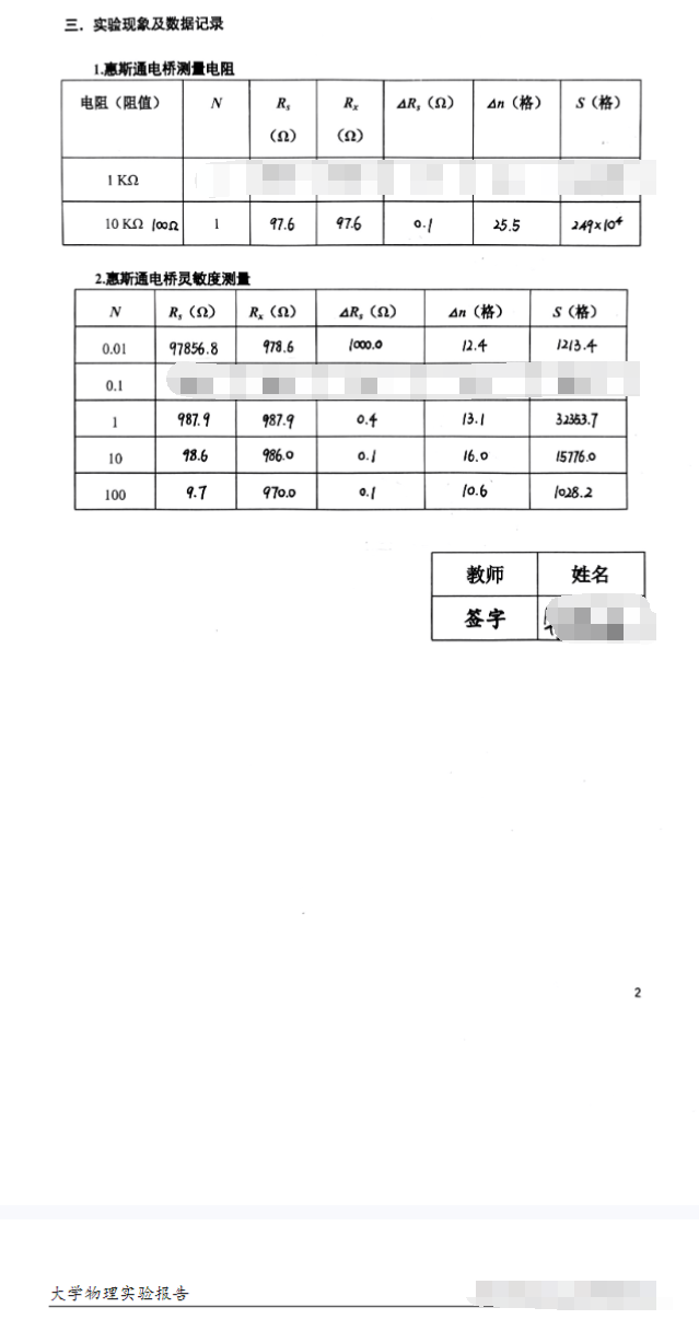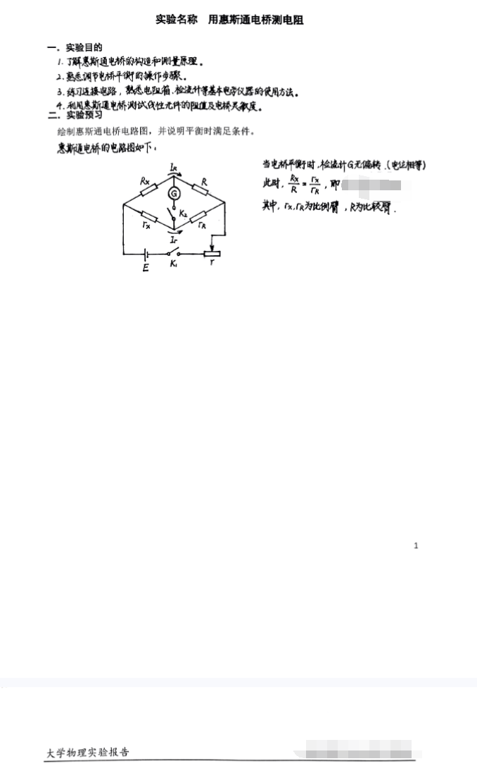 用惠斯通电桥测电阻