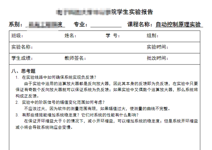 自动控制原理实验典型系统地时域响应和稳定性分析报告