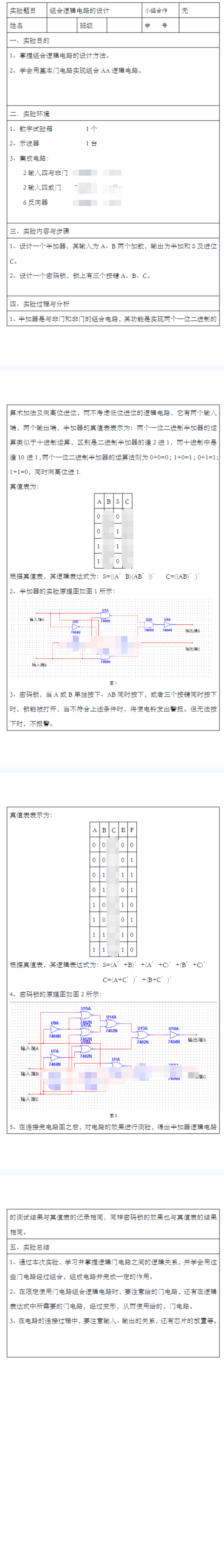 组合逻辑电路实验报告