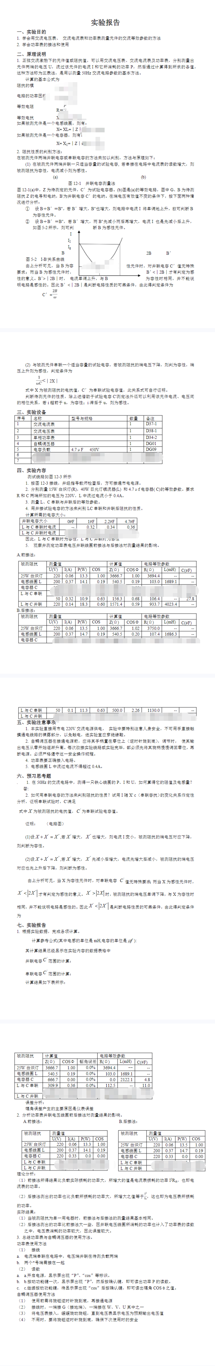 用三表法测量交流电路等效参数