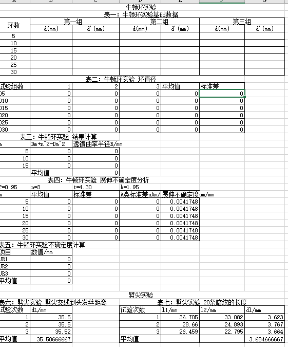 该产品为excel表格文件,可以处理自己实验测量的数据,只需要输入对应数据,表格将自动处理计算和绘图。
