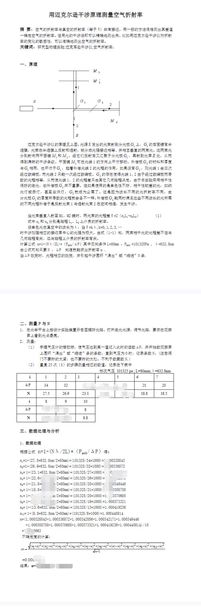 用迈克尔逊干涉原理测量空气折射率