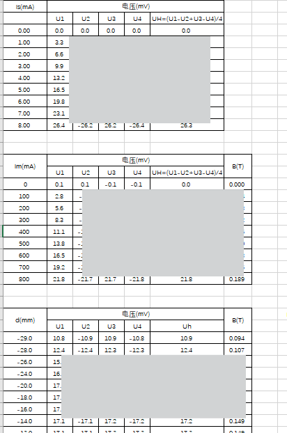 霍尔效应数据处理表格