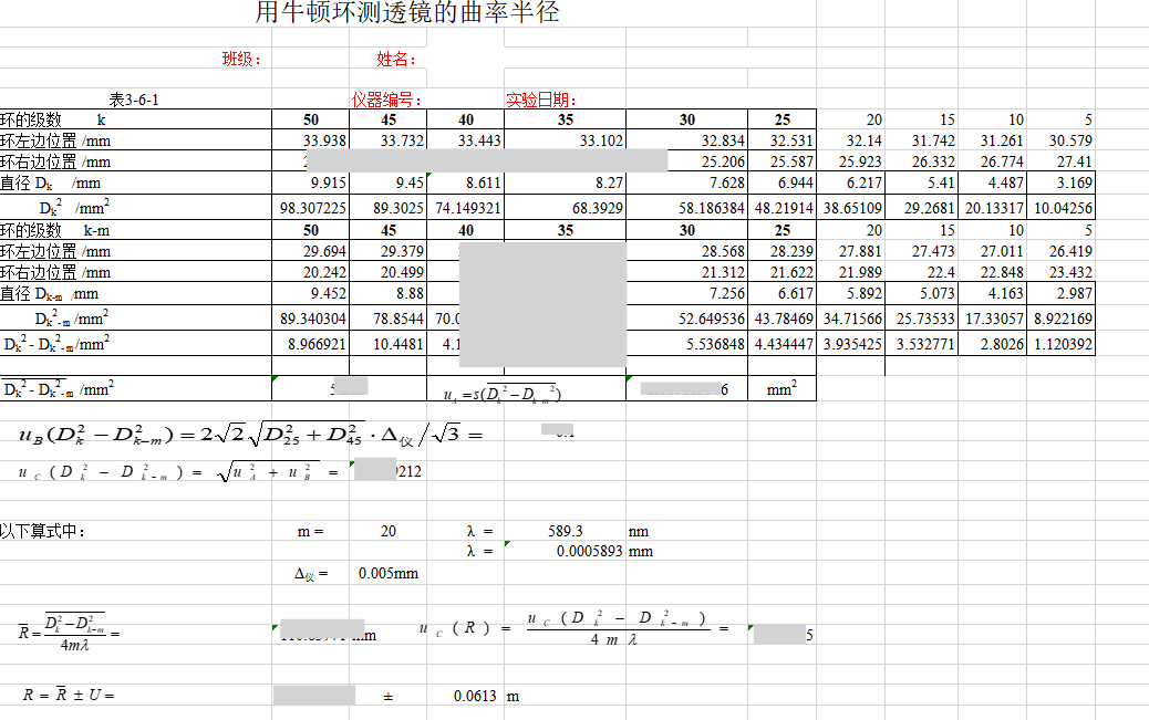 牛顿环数据处理
